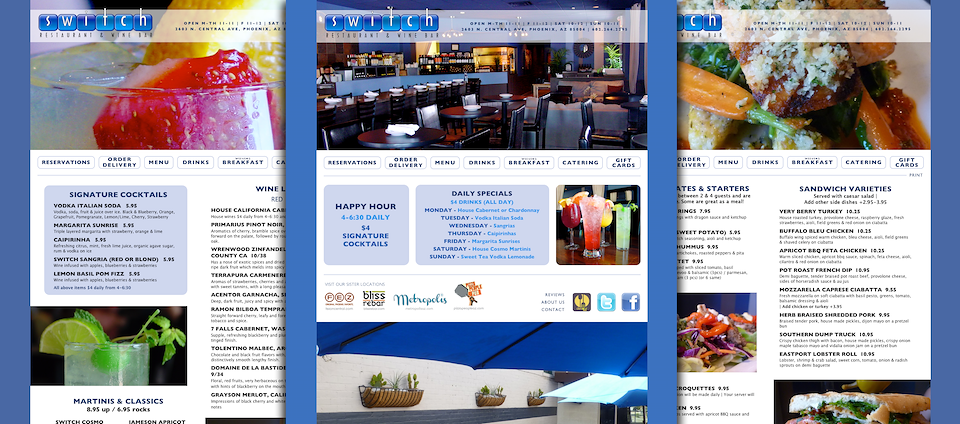 Switch Website Design. Client: Switch Restaurant & Wine Bar, Phoenix, AZ.